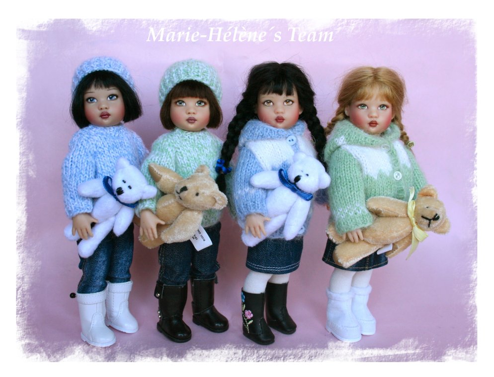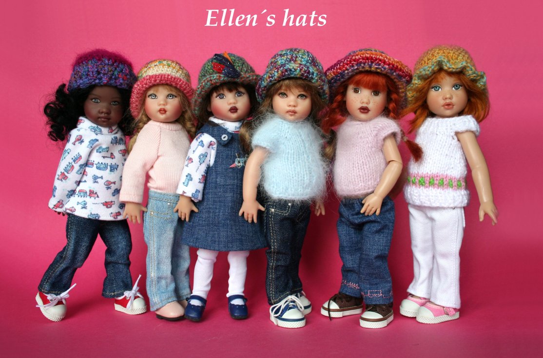 Mary, Riley, Riley (little Red cap), Kate, Pippi y Tulah con gorros de Ellen Harris